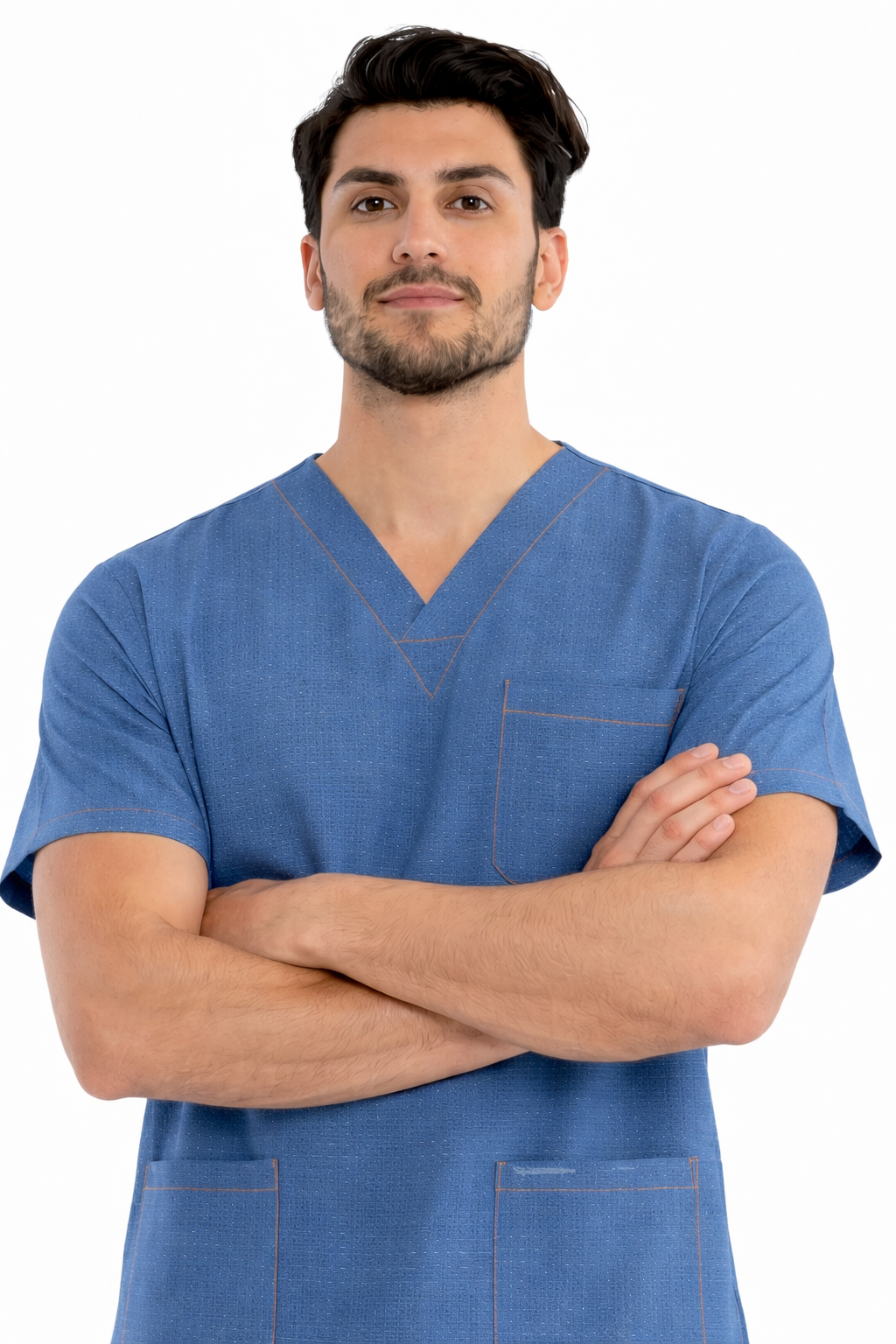 Denim-Inspired Style: Get the elevated, modern look of your favorite denim without the stiffness. This unique texture stands out from standard scrubs.